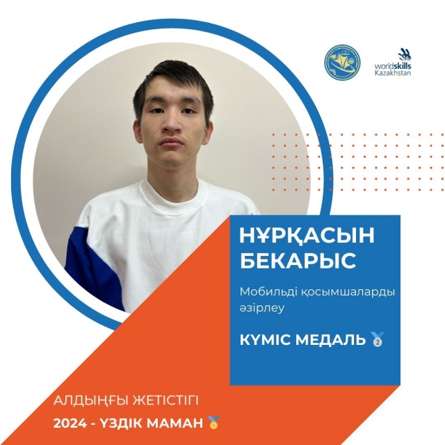 колледжінің студенті Нұрқасын Бекарыс Берикбайұлы күміс медальді иеленді! Оның терең білім мен шығармашылық ізденісі сайыс барысында жоғары